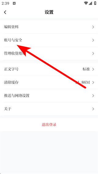 3、在設(shè)置的頁面,需點(diǎn)擊賬號與安全,進(jìn)入賬號與安全的界面。