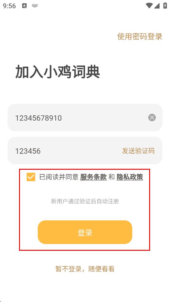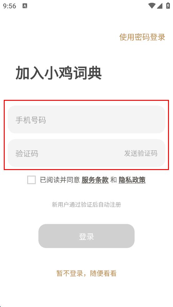 3、輸入手機號碼和驗證碼,勾選已閱讀并同意服務(wù)條款和隱私政策。