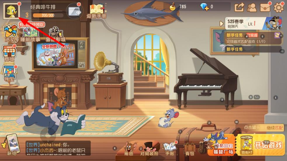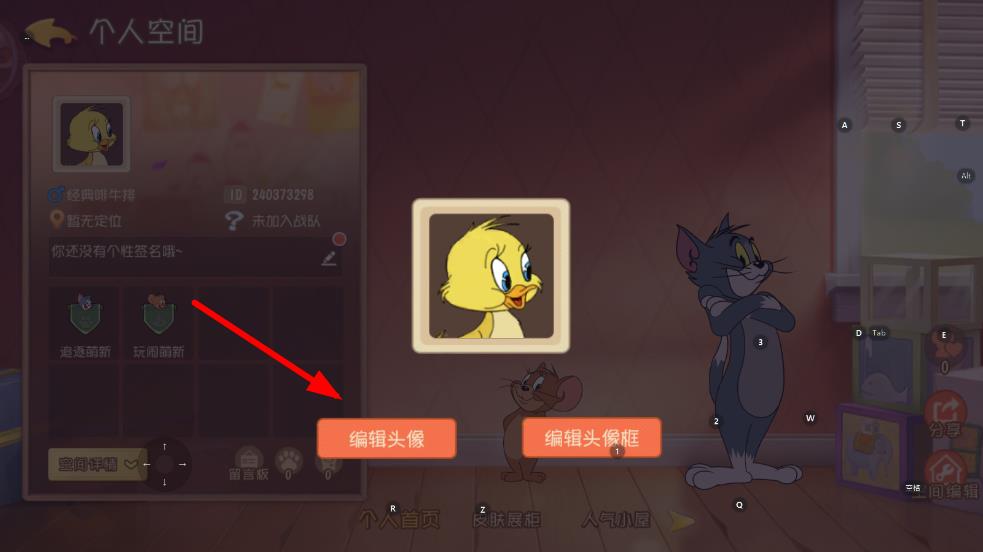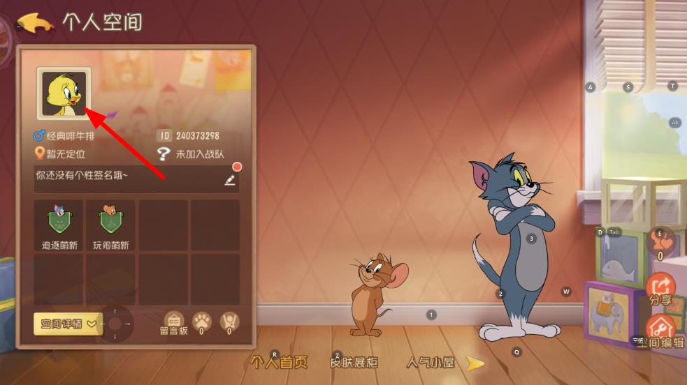 1、貓和老鼠游戲主界面點(diǎn)擊左上角頭像,通過(guò)該操作進(jìn)入個(gè)人空間界面,以便進(jìn)行后續(xù)頭像更換操作。