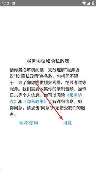 1、打開渤鉆教培,在彈出的頁面,點擊同意按鈕。