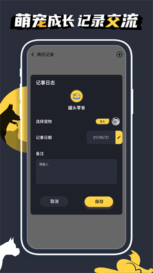 3、鏟屎官日志:記錄你和萌寵的點(diǎn)點(diǎn)滴滴;