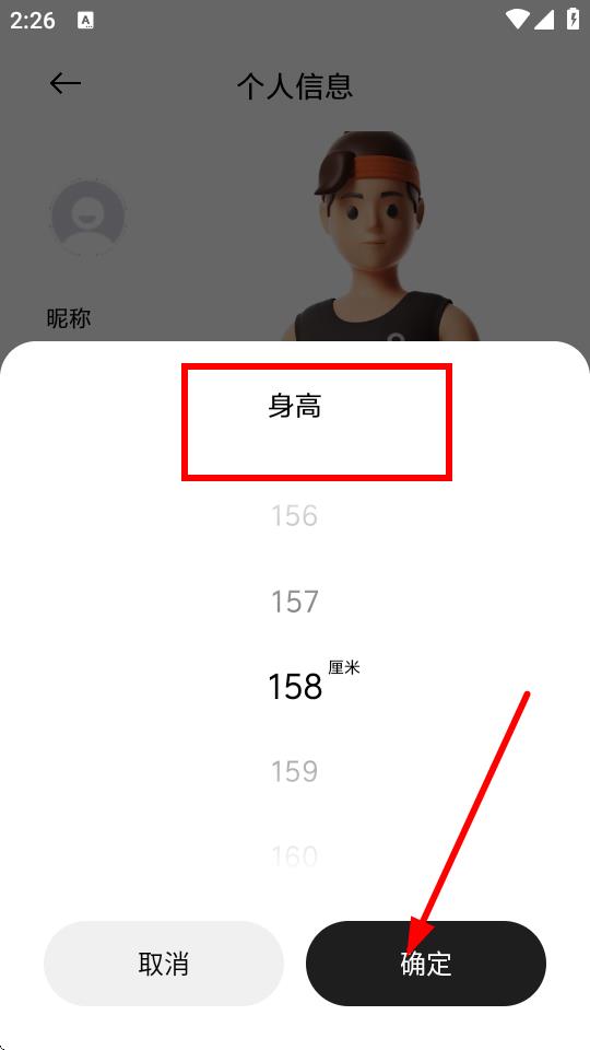 4、在彈出的身高設(shè)置界面中,選擇合適的身高數(shù)值,然后點(diǎn)擊確定按鈕,即可完成身高設(shè)置。