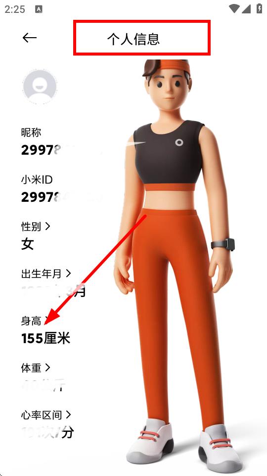 3、在個(gè)人信息列表里,找到身高選項(xiàng)并點(diǎn)擊。
