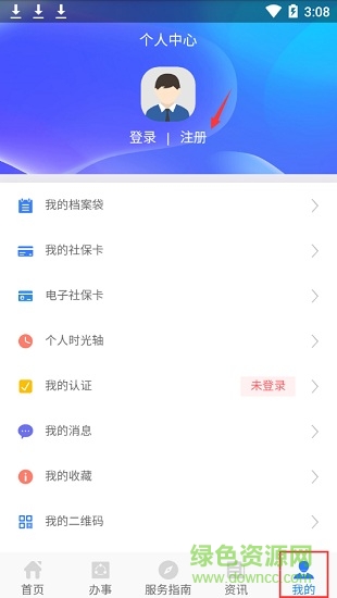 進(jìn)入程序后,找到“我的”服務(wù)欄,點(diǎn)擊上方的“注冊”按鈕;