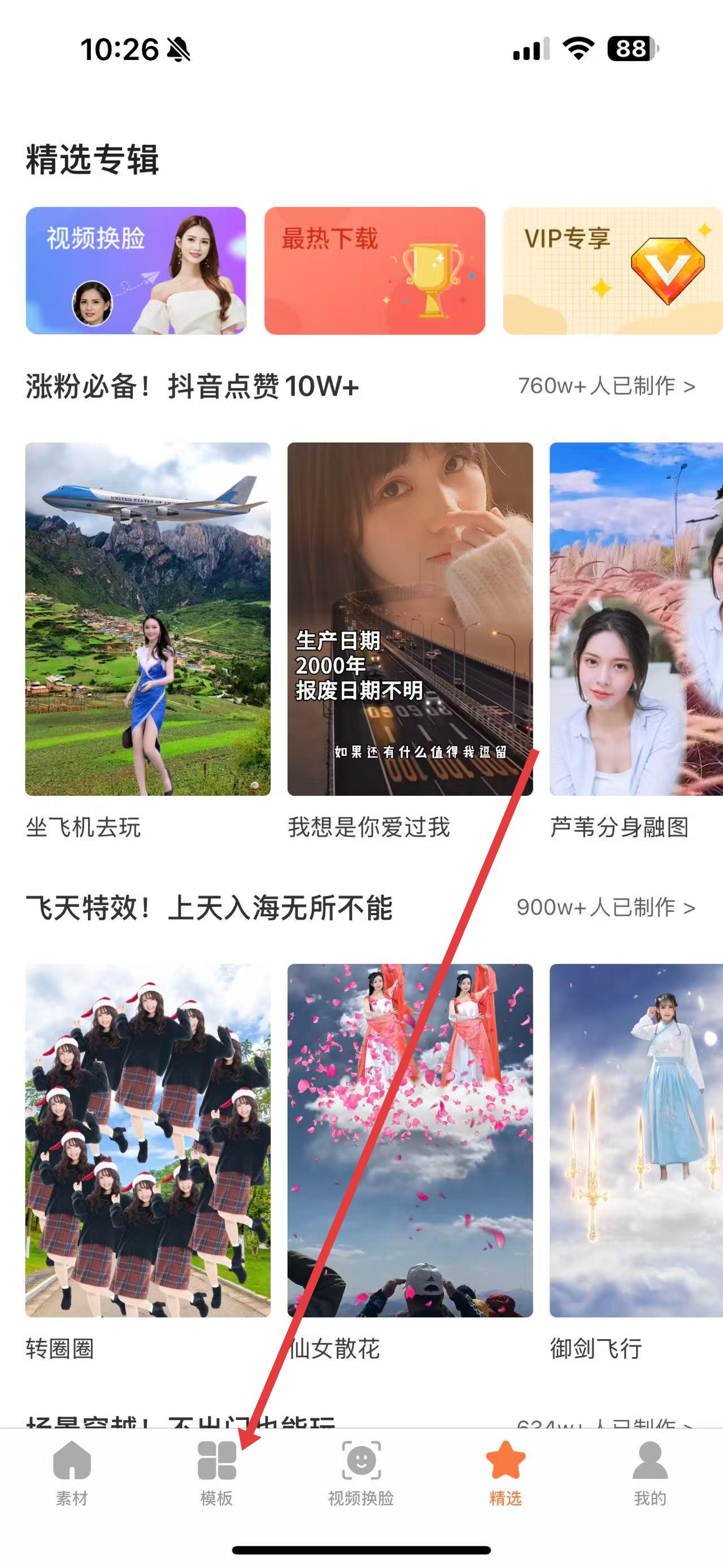 1、打開飛推APP,點擊底部導(dǎo)航欄中的模板選項,進入模板選擇界面。