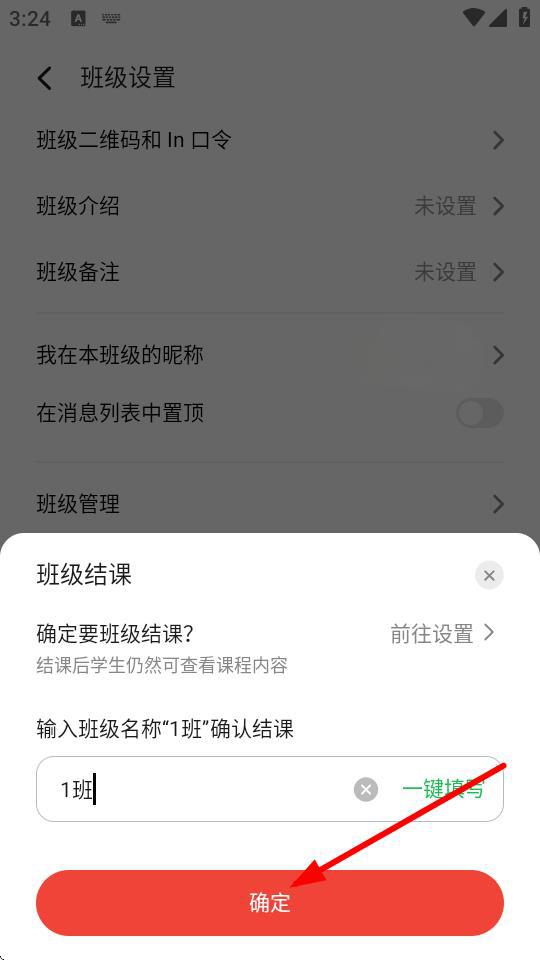 3、在班級設(shè)置的界面,點擊班級結(jié)課,彈出結(jié)課的確認框。