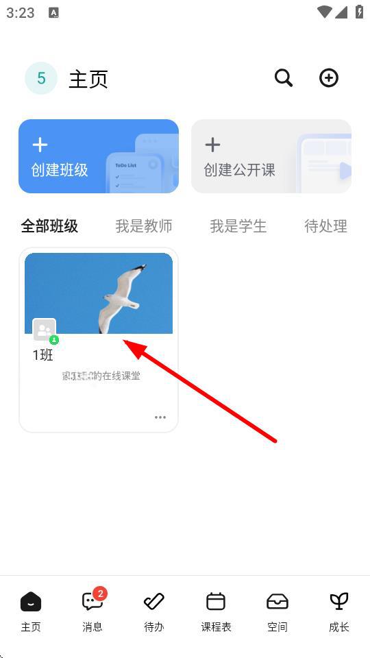 1、在classin的主頁,需要點擊目標(biāo)班級1班,進入班級的頁面。