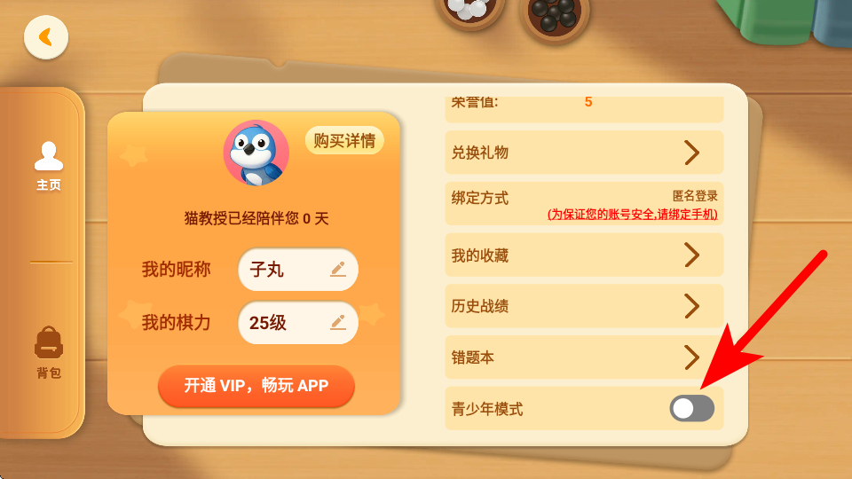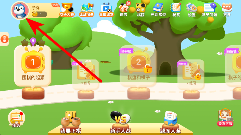 1、在一起學圍棋的主界面,點擊左上角頭像,進入個人主頁。