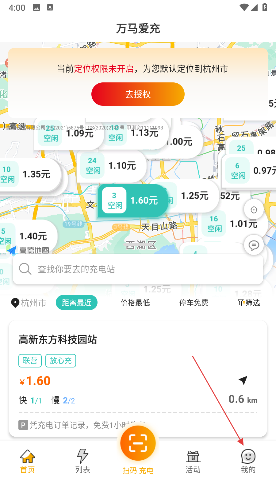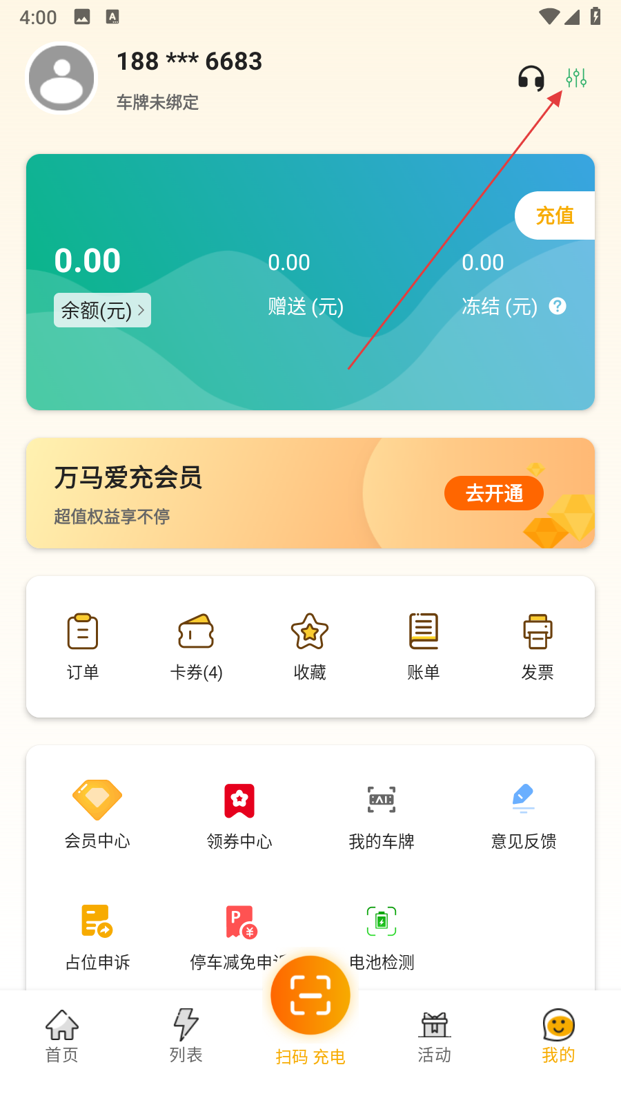 1、打開萬馬愛充APP,點(diǎn)擊頁面底部我的,進(jìn)入個(gè)人頁面。