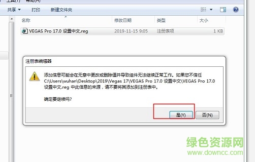 2、設(shè)置中文,雙擊「VEGAS Pro 17.0 設(shè)置中文.reg文件」即可