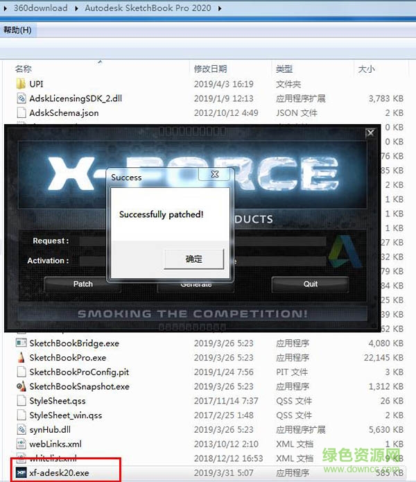 14.將注冊機注冊機xf-adesk20.exe復制在安裝目錄,點擊patch打補丁,成功打補丁,如圖所示。