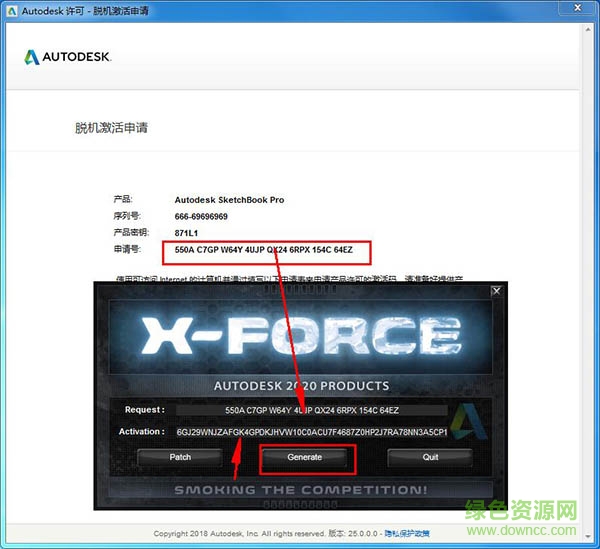 15.激活界面的申請?zhí)枏椭频阶詸C中,點擊generate生成注冊碼。