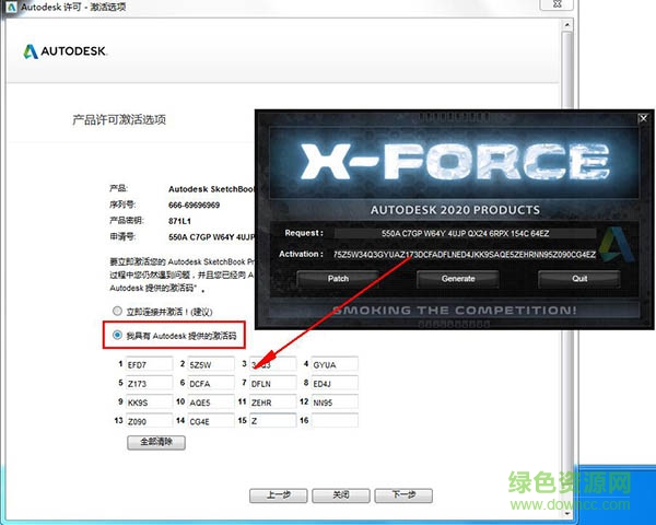 19.選擇激活方式,點擊我有激活碼,注冊機中生成的激活碼復制到激活界面,點擊下一步激活。