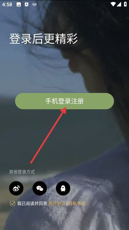 2、在登錄頁面點(diǎn)擊手機(jī)登錄注冊按鈕。