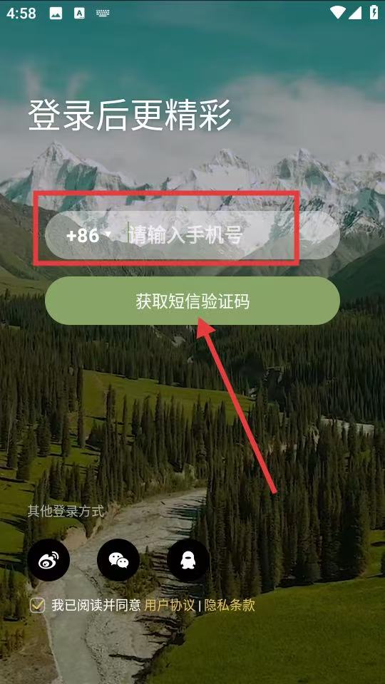 3、輸入需要登錄的手機(jī)號(hào),點(diǎn)擊獲取短信驗(yàn)證碼。