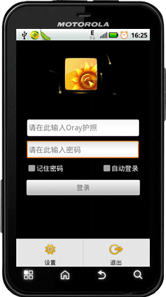 主控端安裝成功后,使用Oray帳號和密碼即可登錄Android主控端。