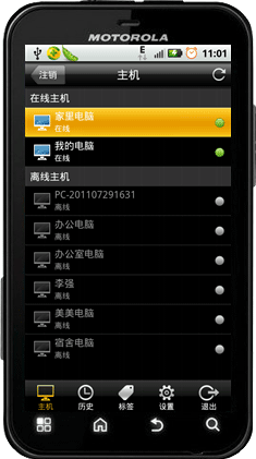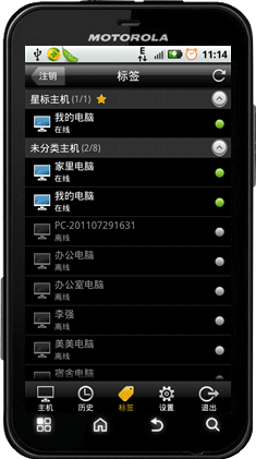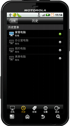 在下方的的操作中我們可以看到除了主機外還有歷史、標簽、設(shè)置、退出四個功能。