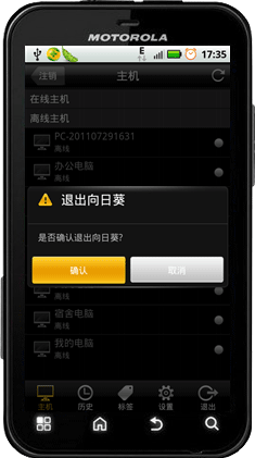 點擊退出按鈕,確認退出后,可直接退出向日葵Android主控端。
