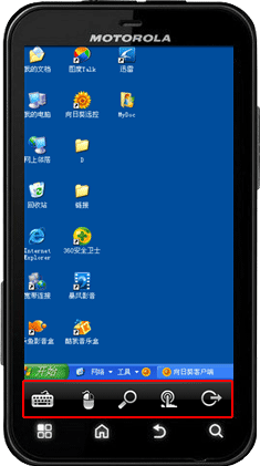 在遠程主機桌面下方,我們可以看到有五個功能按鈕,分別代表鍵盤、鼠標、縮放大小、設(shè)置、退出。