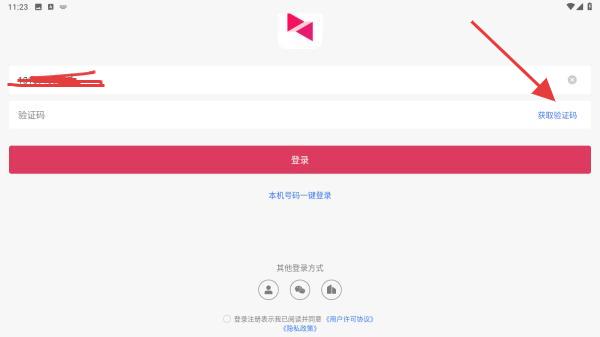 2、輸入要登錄的手機號,并點擊獲取驗證碼。