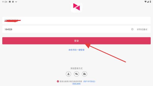 3、將收到驗證碼輸入進去后,再點擊登錄的按鈕即可。
