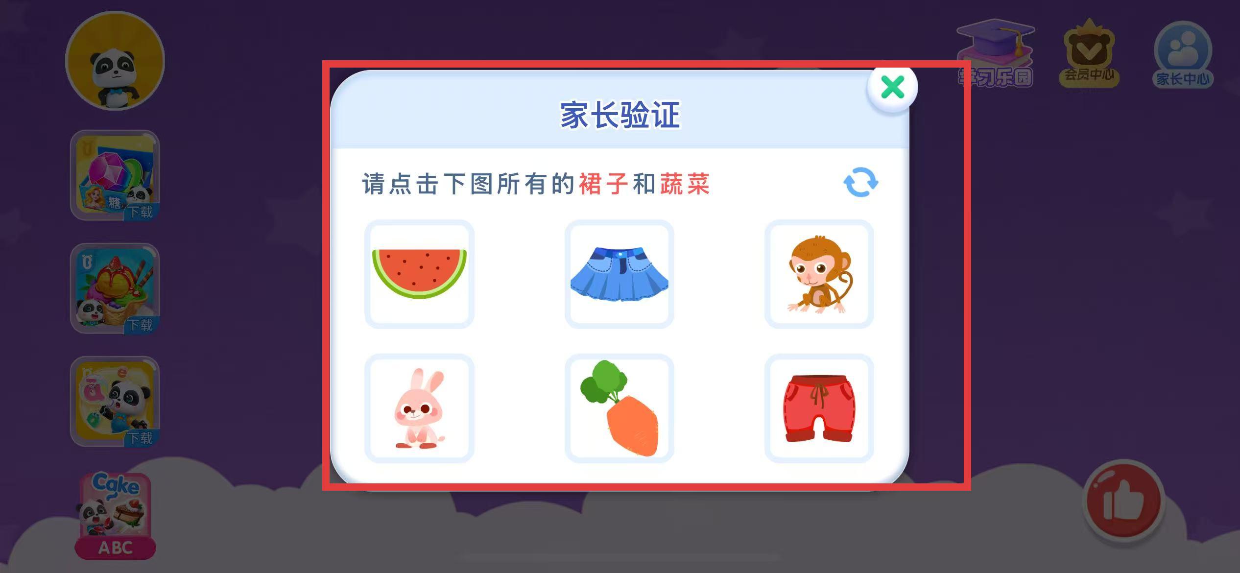 2、在彈出的家長驗證窗口,按提示完成驗證。