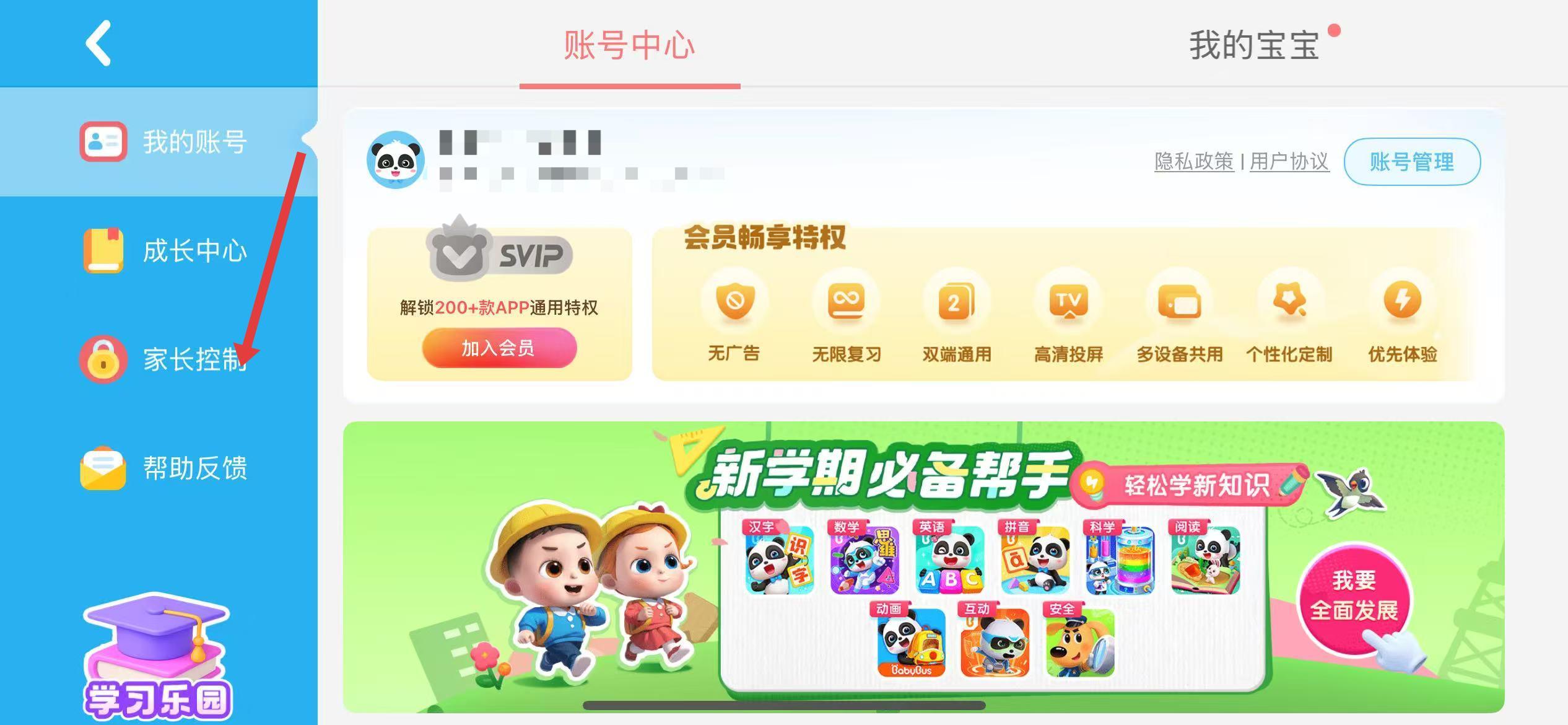 1、點擊主界面右上角家長中心圖標(biāo)。