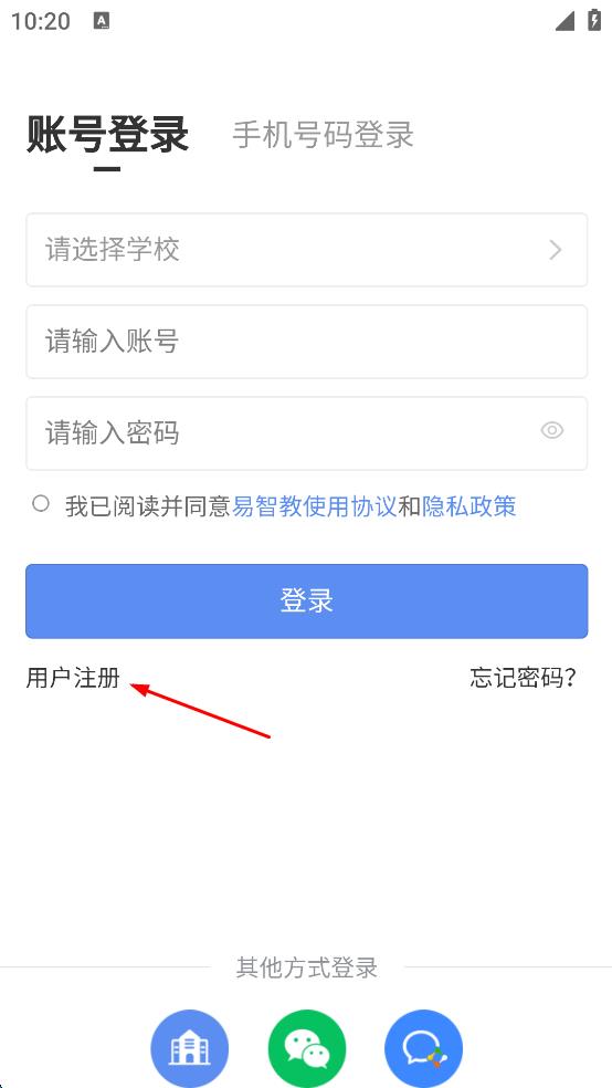 3、在賬號登錄頁面,若沒有賬號,點擊“用戶注冊”,進入到注冊頁面。
