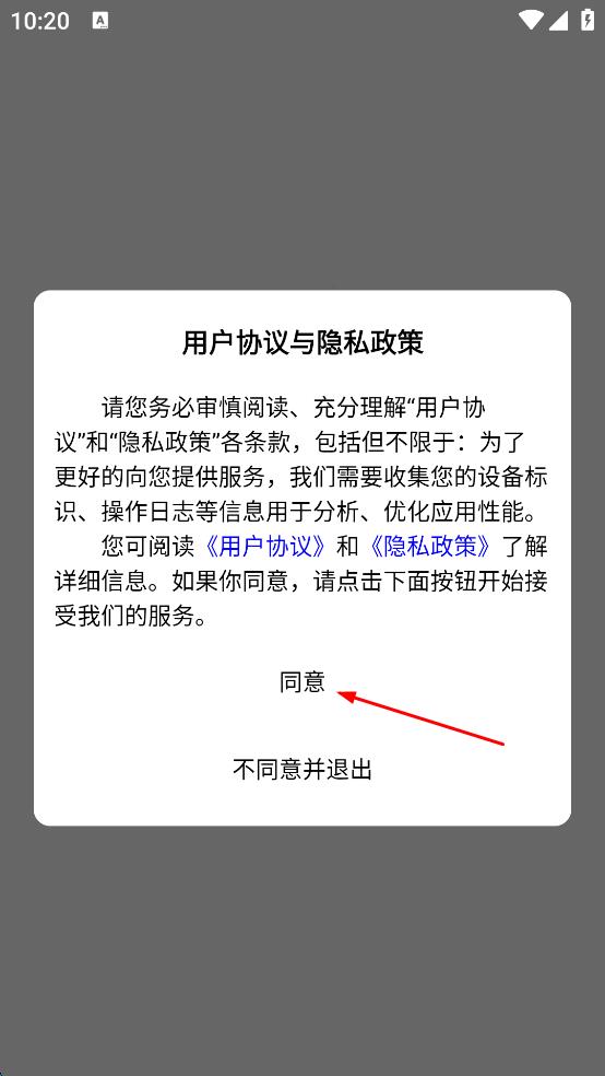 1、打開易智教應用,彈出“用戶協(xié)議與隱私政策”說明框,認真閱讀后點擊“同意”,進入到應用介紹頁面。