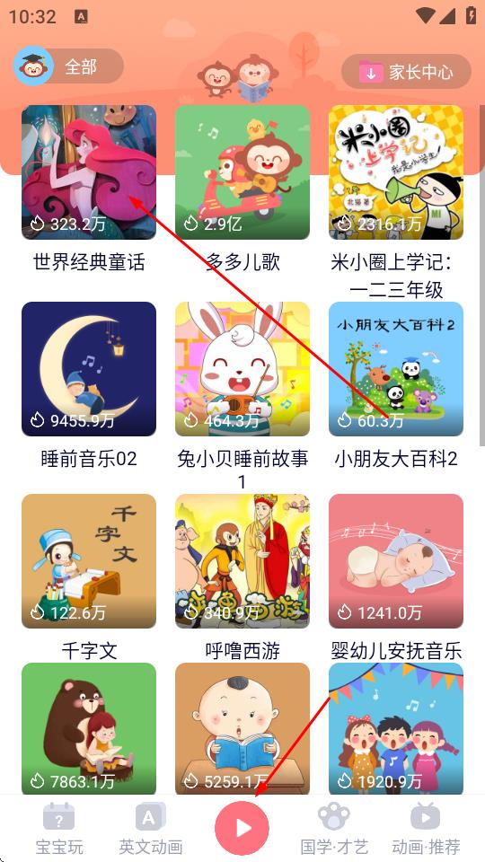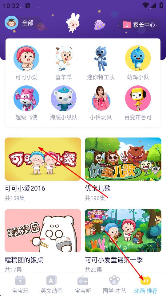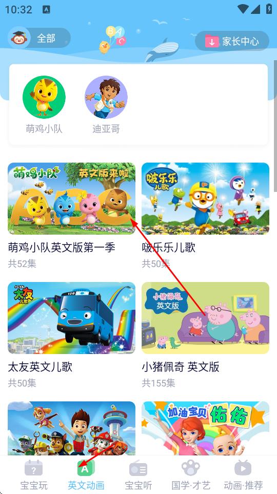 2、點擊英文動畫,可看到豐富英文動畫資源,通過生動有趣的動畫形式,讓孩子在觀看過程中自然地接觸和學(xué)習(xí)英語,培養(yǎng)英語語感。