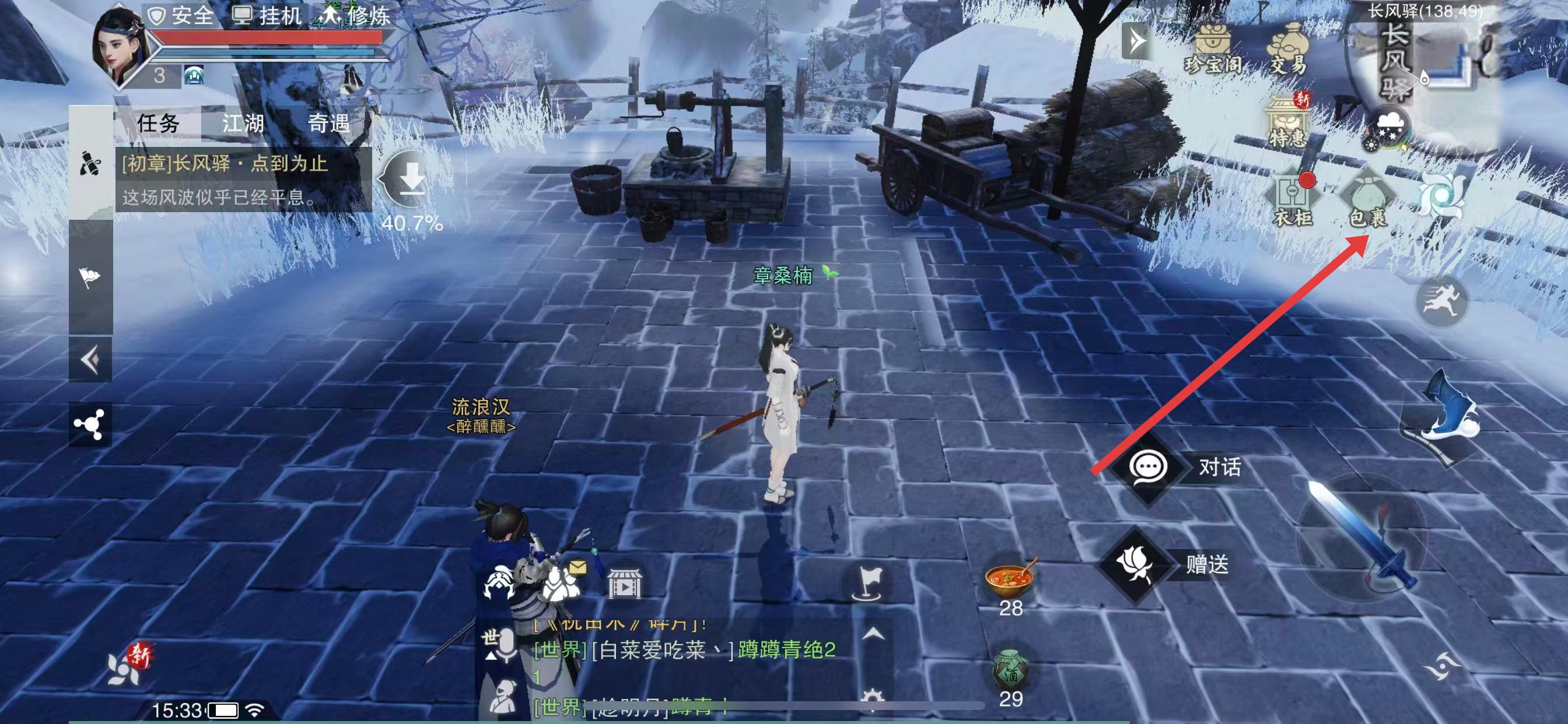1、進入游戲主界面,點擊右上角的包裹圖標。