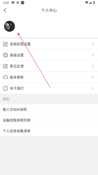2、在個人中心頁面,點擊頭像區(qū)域,進入個人資料頁面。