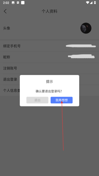 3、在個人資料頁面中,找到退出登錄選項并點擊,彈出確認要退出登錄嗎?的提示彈窗。