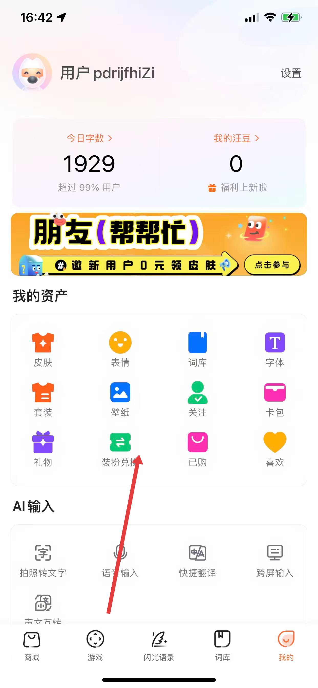 2、在個(gè)人中心界面,找到我的資產(chǎn)板塊,點(diǎn)擊其中的裝扮兌換選項(xiàng)。
