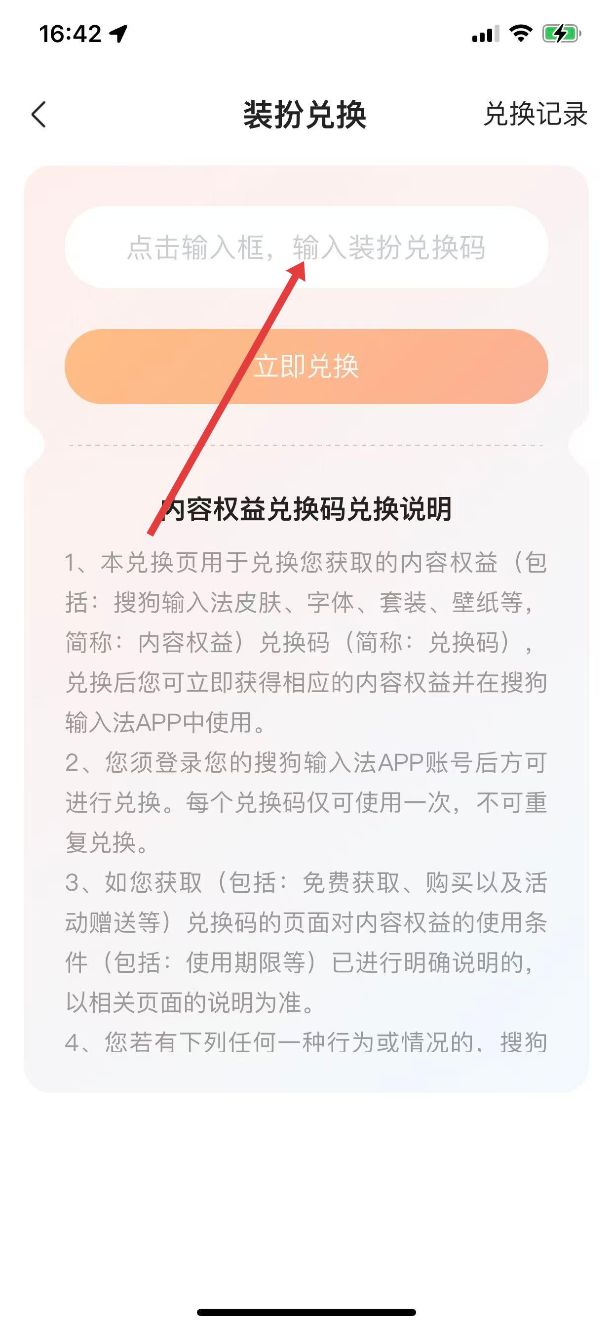 3、輸入獲取到的裝扮兌換碼,點(diǎn)擊立即兌換按鈕,即可完成裝扮兌換操作。
