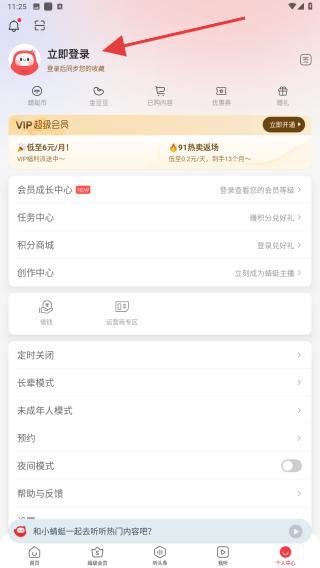 3、在個(gè)人中心的頁面內(nèi),點(diǎn)擊立即登錄的區(qū)域。
