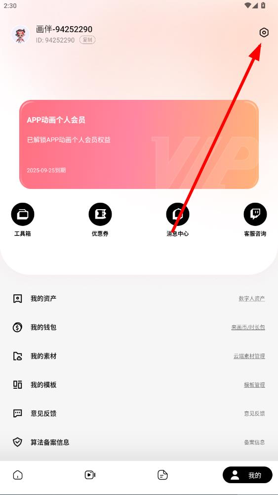 2、在個人頁面中,點擊頭像右側(cè)的設(shè)置圖標,進入設(shè)置界面。