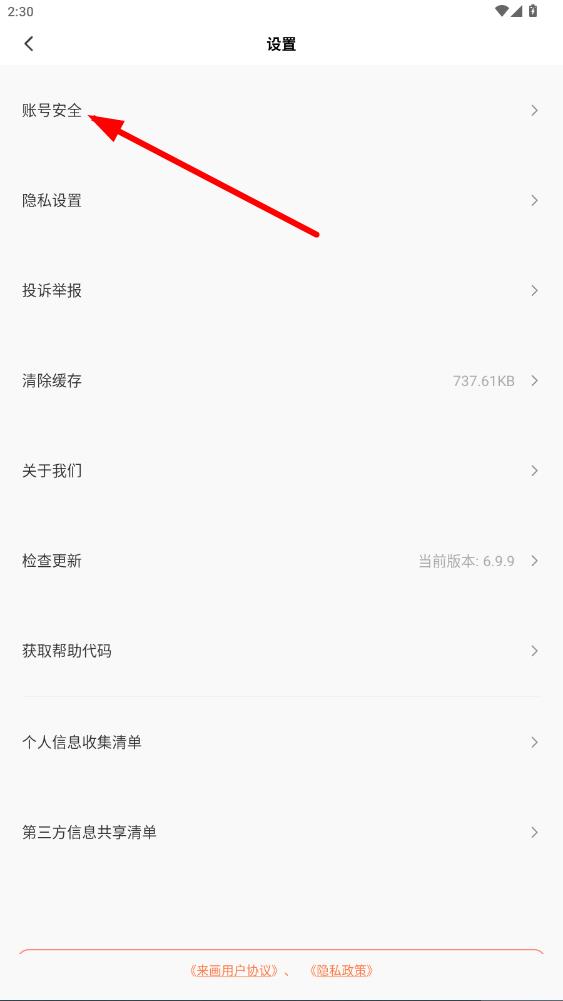 3、在設(shè)置頁面里,點擊賬號安全選項。