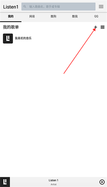1.點擊進入軟件找到“我的”界面,在【我的歌單】中點擊右上方的“+”號,如下方所示;