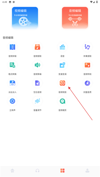 2、進入音頻剪輯的頁面內,找到并點擊音頻倒放的功能按鈕。