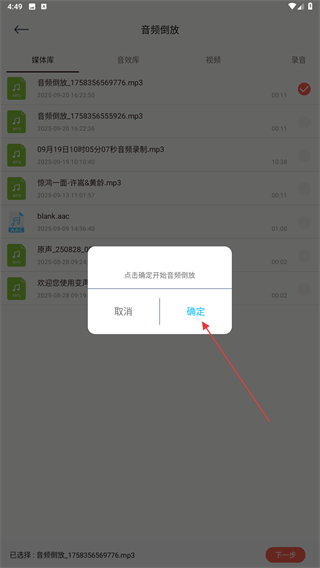 4、在彈出的確認內容中,點擊確定的按鈕即可倒放成功。
