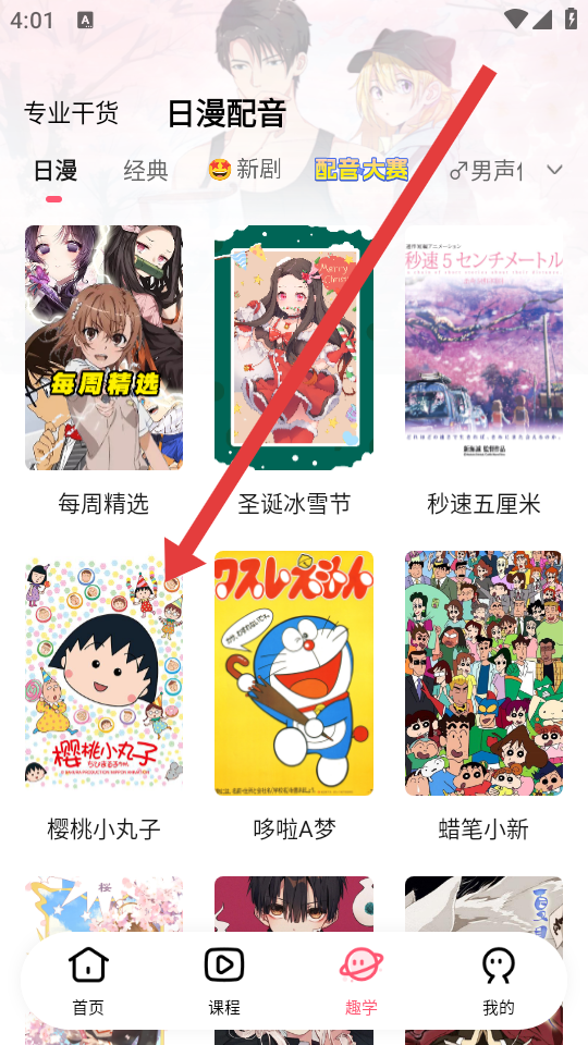 2、在趣學(xué)頁面的日漫配音板塊,選擇要進(jìn)行配音的日漫作品。