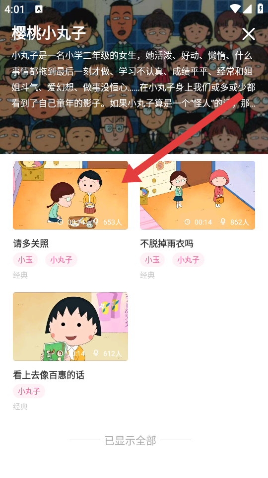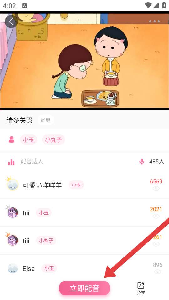3、進(jìn)入所選日漫的視頻列表后,需要點擊要配音的具體片段。