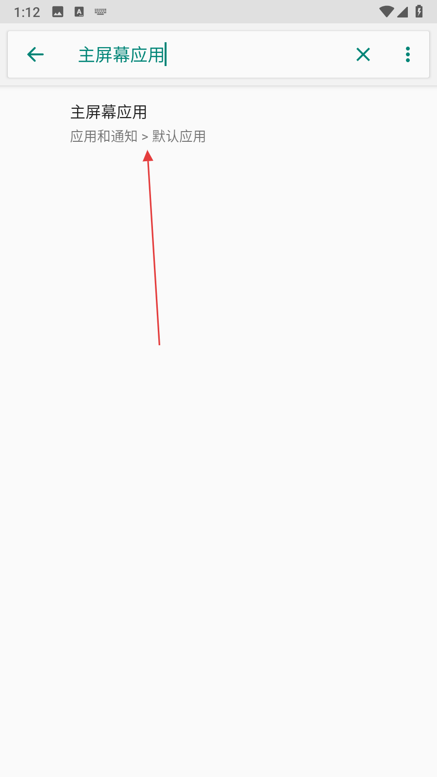 3、點擊搜索結(jié)果中的主屏幕應(yīng)用選項,進(jìn)入默認(rèn)應(yīng)用里的主屏幕應(yīng)用設(shè)置頁面。