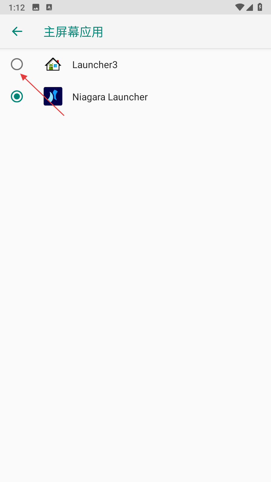 4、在主屏幕應(yīng)用列表中,找到除Niagara Launcher外的其他主屏幕應(yīng)用,點擊其左側(cè)的選擇按鈕。
