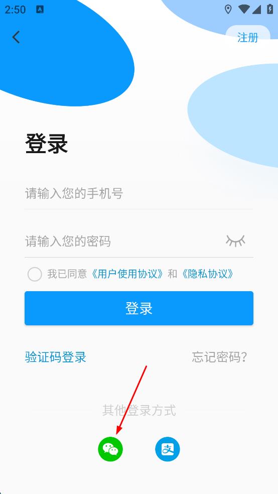 3、勾選協(xié)議選項(xiàng)后,點(diǎn)擊微信登錄圖標(biāo),按照微信登錄流程,完成授權(quán)等操作,從而登錄公交服務(wù)軟件。
