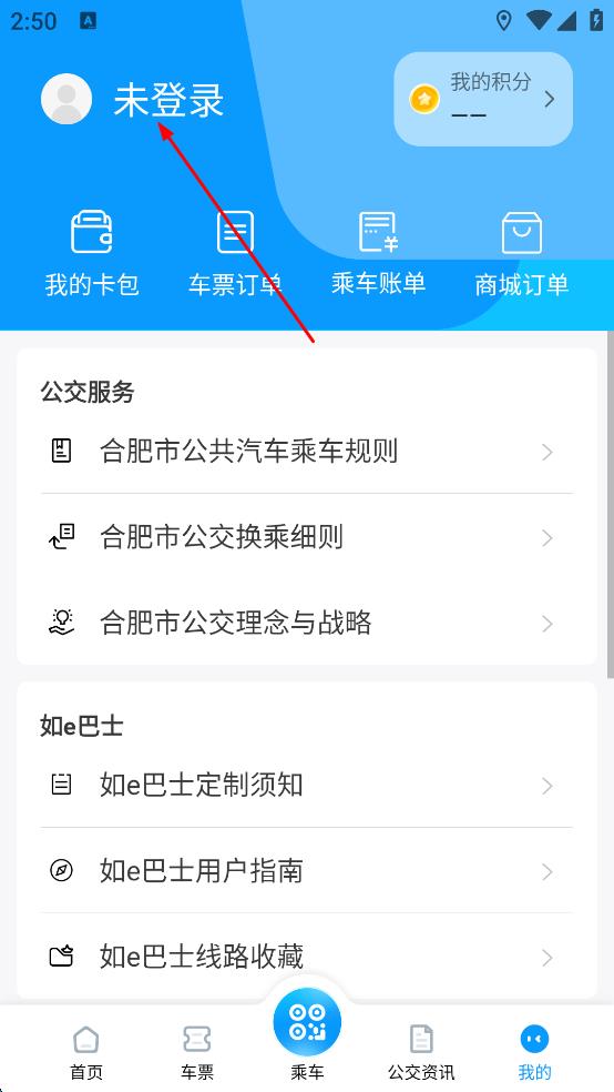 1、打開公交服務(wù)軟件,進(jìn)入主界面后,點(diǎn)擊底部“我的”選項(xiàng),進(jìn)入個(gè)人中心頁面,進(jìn)行登錄。