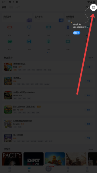 1、點(diǎn)擊應(yīng)用首頁底部移植選項(xiàng),進(jìn)入游戲移植界面,可瀏覽各類游戲相關(guān)動(dòng)態(tài)與資源推薦,準(zhǔn)備下載模擬器。
