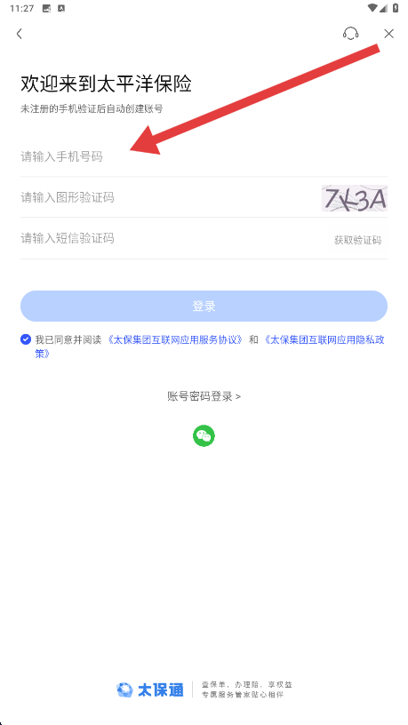 3、在跳轉到登錄界面中后,可以點擊輸入框填寫手機號碼以獲取驗證碼登錄賬號。
