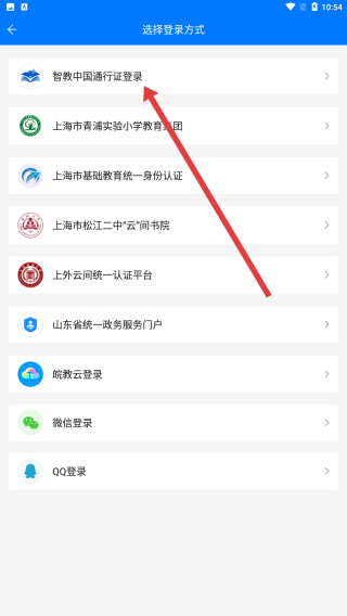 2、在選擇登錄方式界面,可以通過點(diǎn)擊智教中國通行證登錄選項(xiàng),跳轉(zhuǎn)至該通行證的用戶登錄頁面。